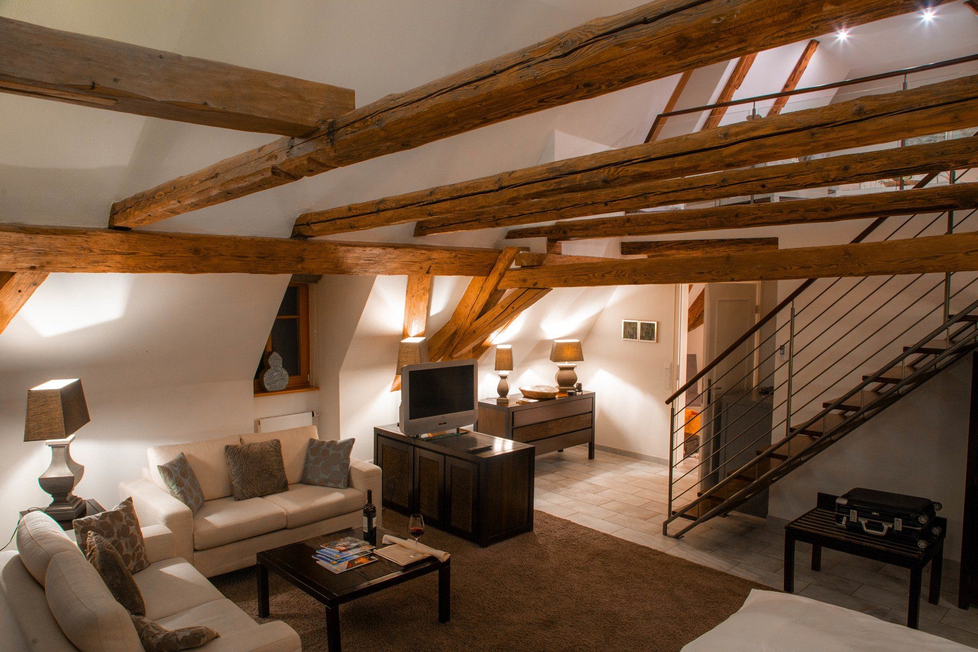 Classic and spacious suite on two floors under the roof. Highlights are the original wooden beams. Softness offered by the whites tones on 67 sqm.